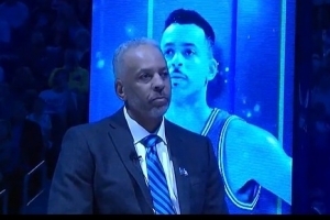 戴尔·库里的儿子斯蒂芬·库里和赛斯·库里均到场祝贺。