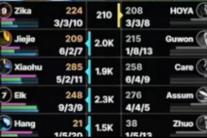 体育资讯4月9日讯 LPL第二赛段NIP首局不敌WBG,本局Guwon使用蔚打出1-8-13的尴尬战绩。