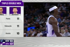 爵士主场迎战灰熊,截至发稿贝兹·姆本和康查尔同时达成三双。