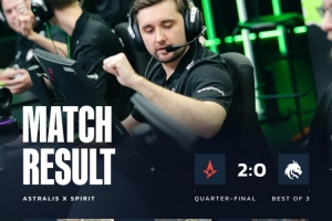 体育资讯3月14日讯 CS2大赛EPL S23来到1/4决赛,Spirit遭Astralis两图横扫惨遭淘汰,A队进军半决赛对阵Aurora!