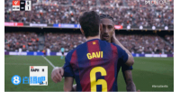 加维在上场时直接从拉菲尼亚的手中接过了队长袖标,戴在了自己的左臂上!