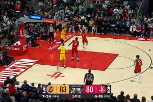 GIF-詹姆斯腾空空接单臂炸扣!